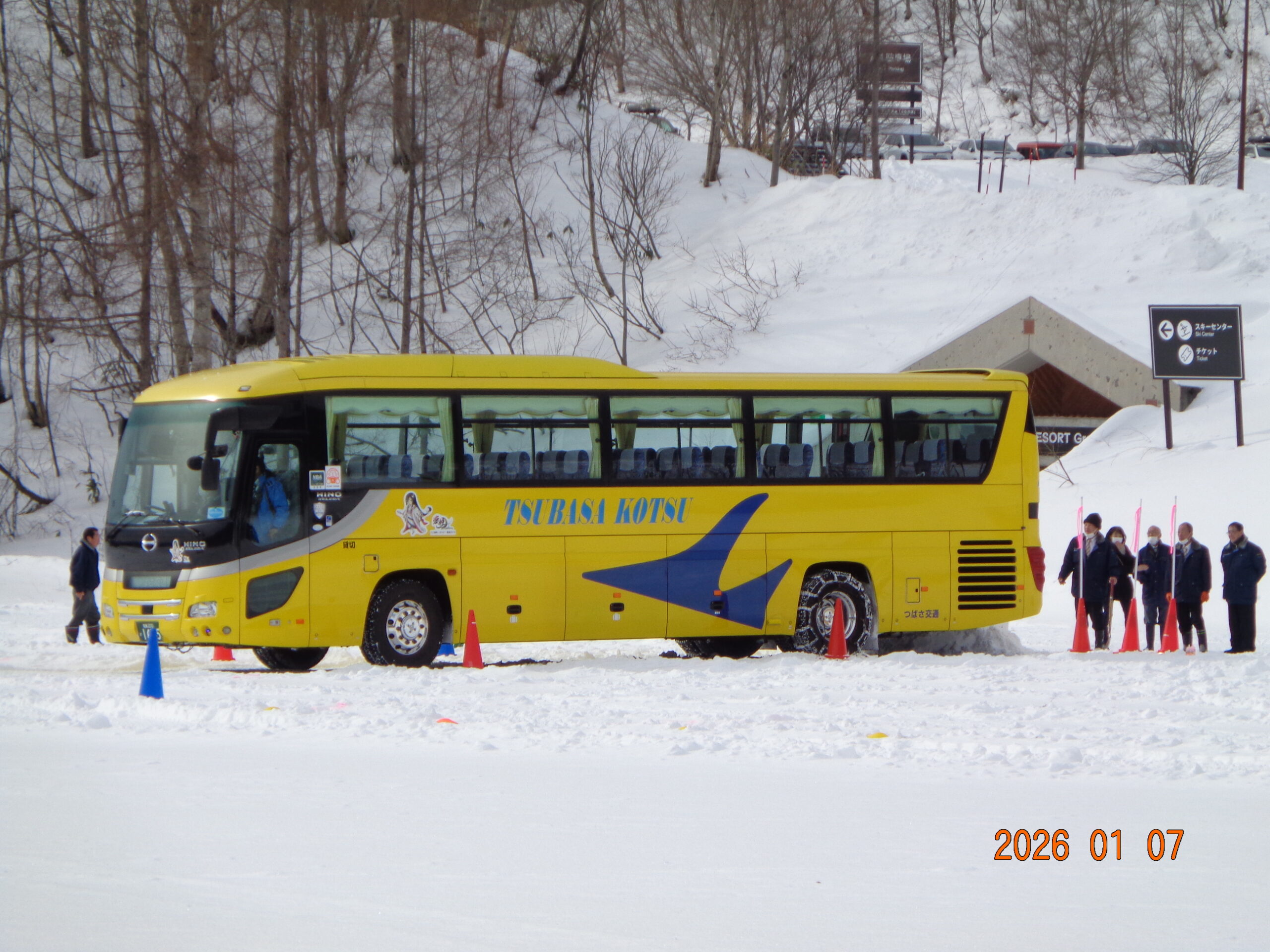 明けましておめでとうございます 社員一同本年も、安心安全なバスの運行を遵守してまいります。本年も弊社をよろしくお願いします。 令和8年1月7日 雪道訓練を実施しました。 福島県バス会社安全推進協議会でグランデコ様をお借りして訓練に励んでまいりました 投稿日 2026年1月9日